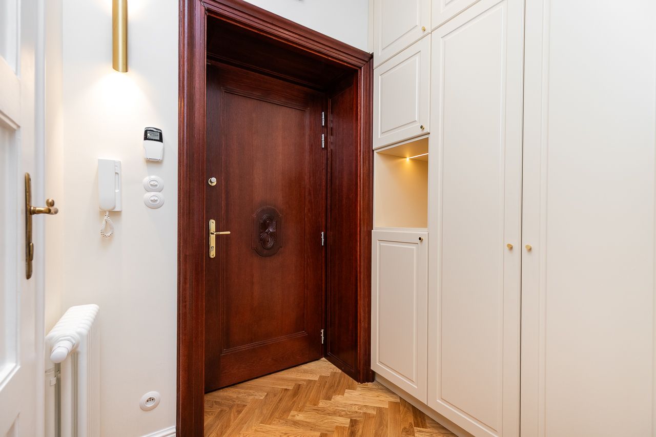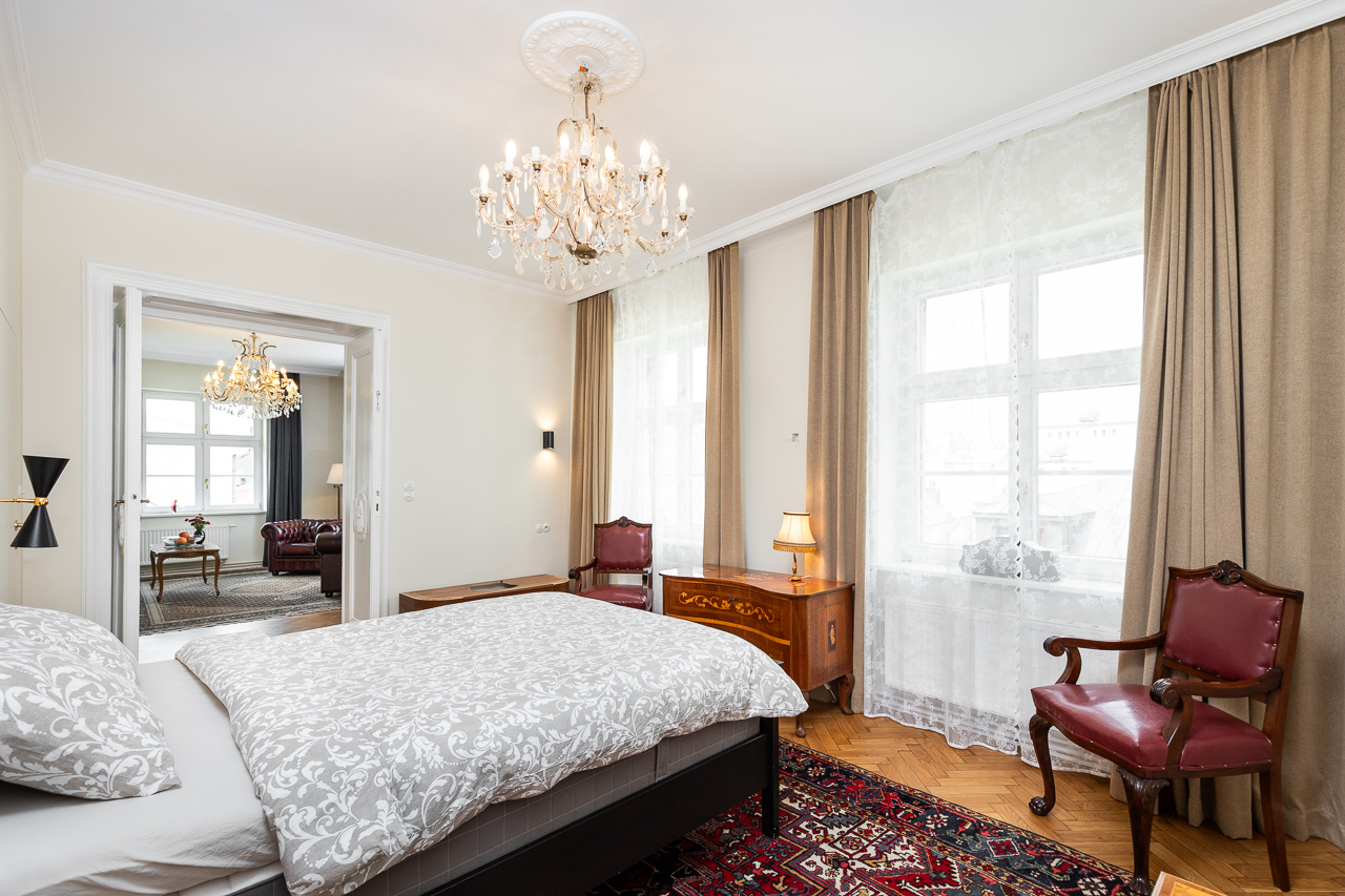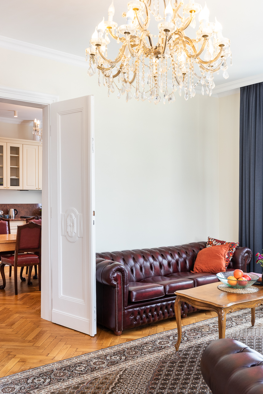 Located in a historic townhouse built in 1928, the residence combines the elegance of Kraków’s interwar architecture with modern comfort and refined interiors.