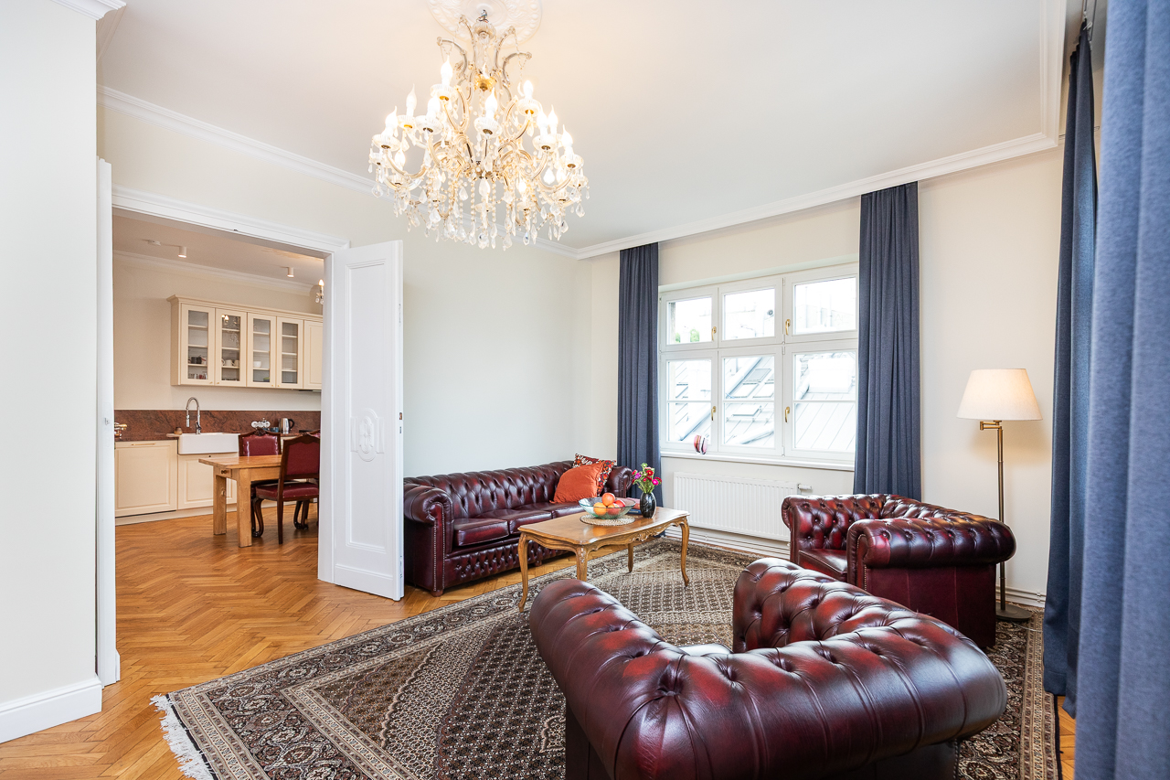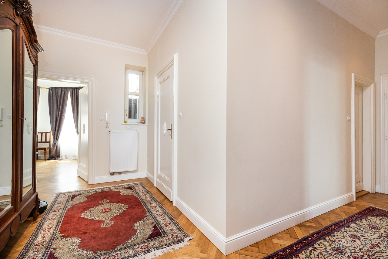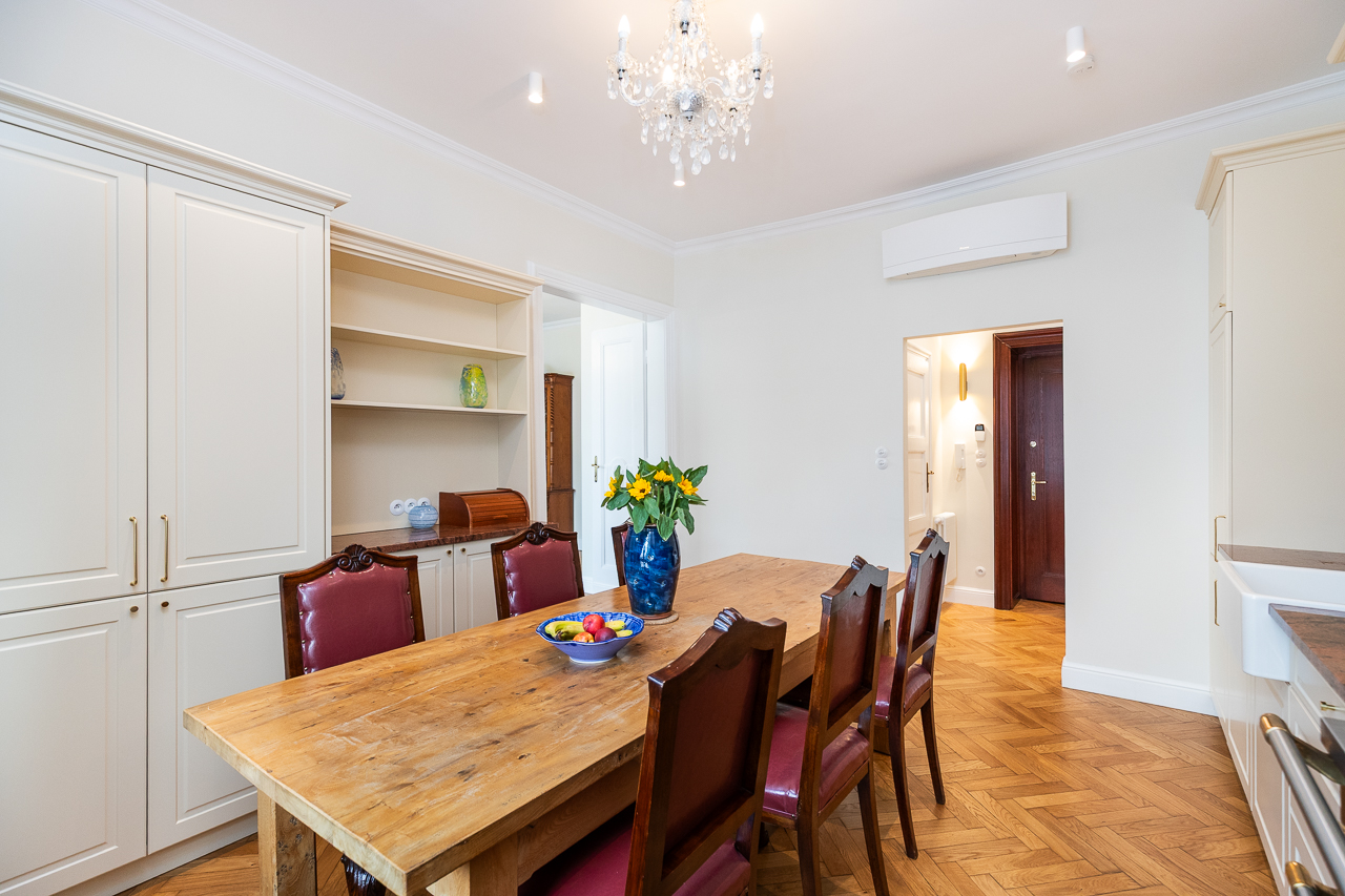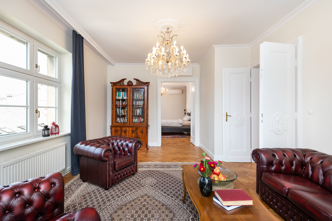 Located in a historic townhouse built in 1928, the residence combines the elegance of Kraków’s interwar architecture with modern comfort and refined interiors.